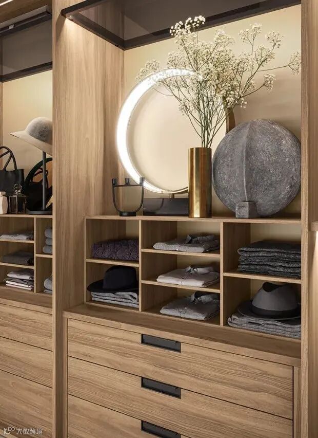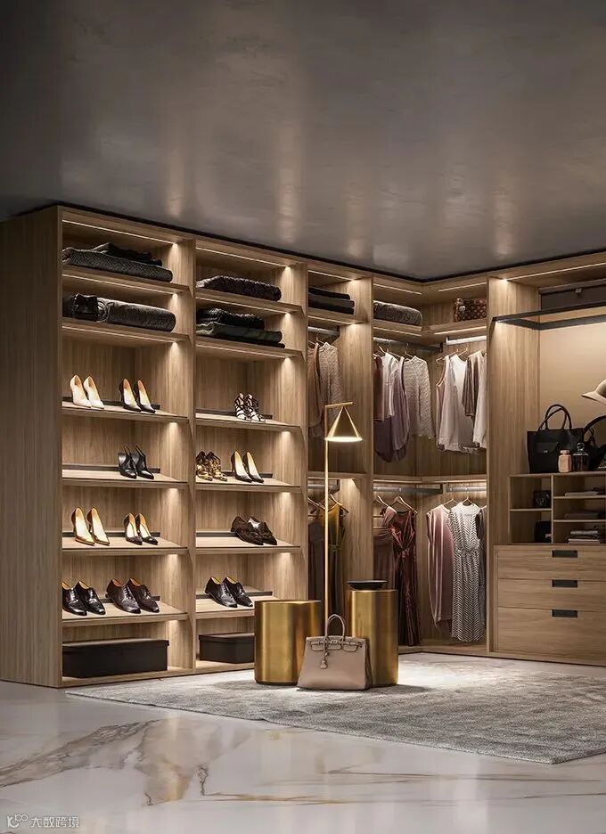 步入式衣帽间: 作为一个储存衣物和更衣的独立房间, 近年来成为了越来越多的人的新宠,而作为一个功能性极强的区域,它的作用也不再仅仅局限于收纳,而演变为一种生活品质的象征,人们对衣帽间的诉求也开始趋向大格局、大收纳、高颜值等。