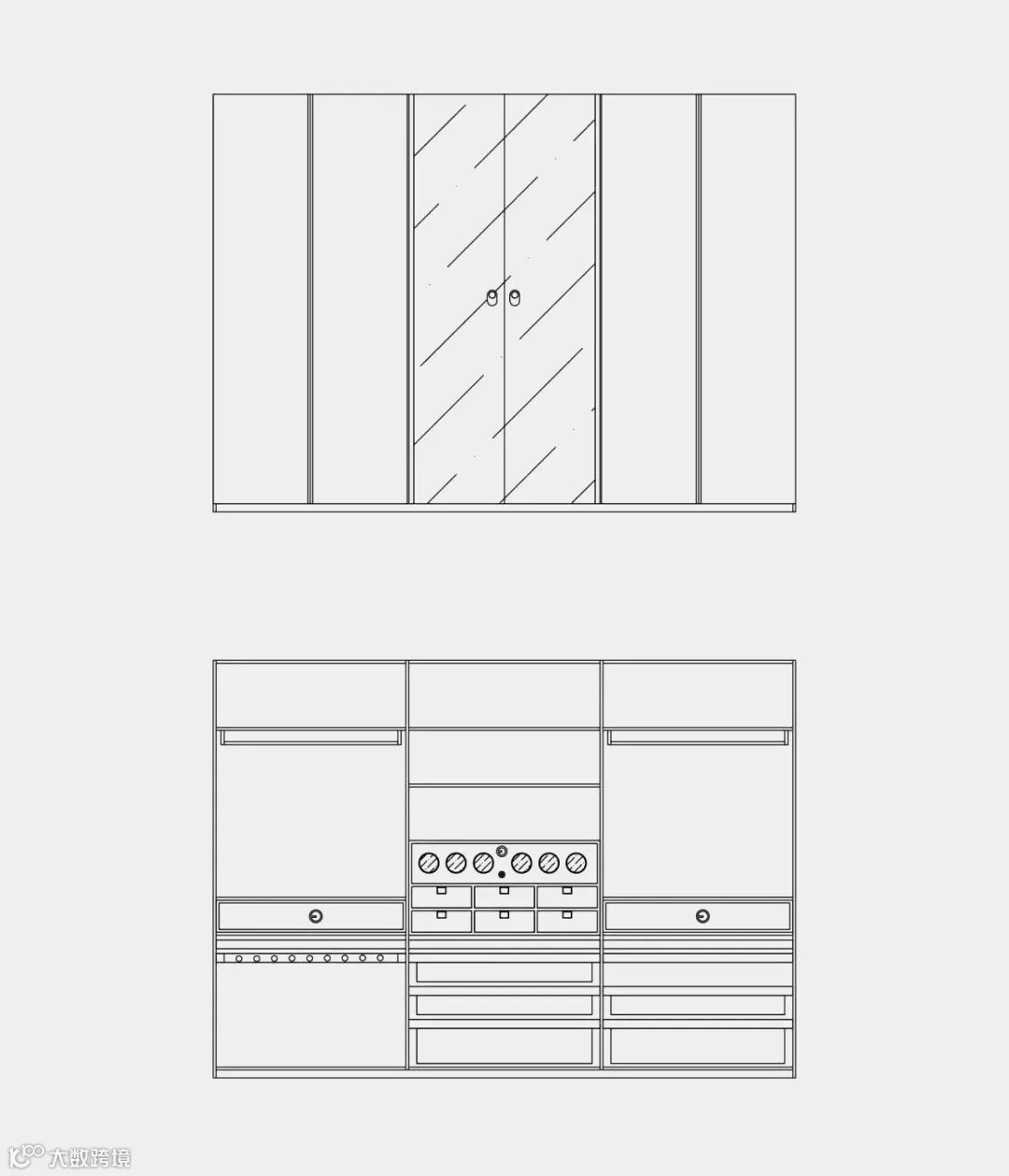 平型布局适合小户型或户型不太方正的空间可以利用这种布局弥补,更好的实现空间收纳,如果两侧较宽,还可以考虑平行双一字型衣帽间,一侧放置衣物,一侧用作梳妆台