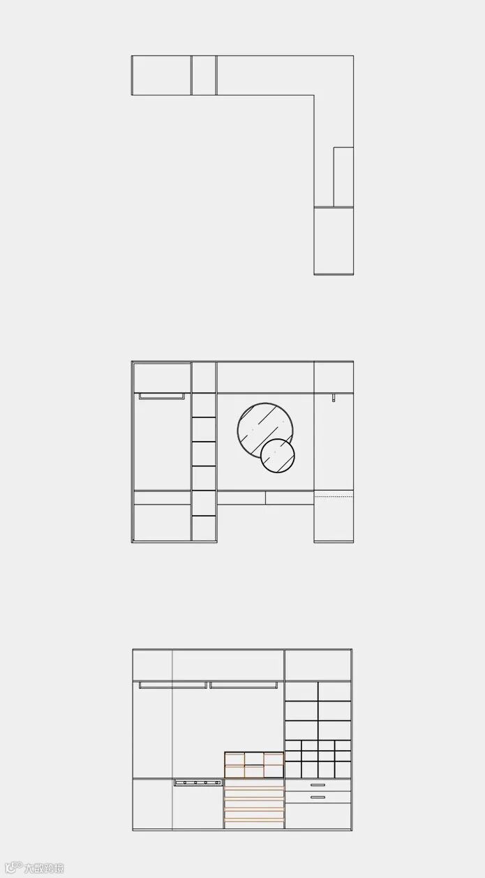 如果房间面积不够理想,建议采用L型布局。作为一种常见的衣帽间设计,它适应性广,对空间的要求也比较低,无论大户型还是小户型都非常适用。