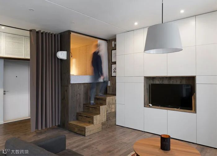 这对于小型住宅来说非常合适,因为它节省了空间,并为整体构图提供了额外的存储。它首先为电视屏幕组装一个特定的壁龛,其余的空间用选定的材料覆盖,以确保存储空间的不同配置。