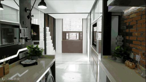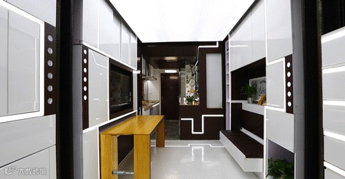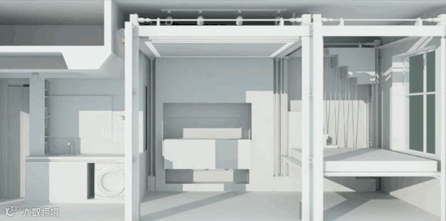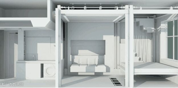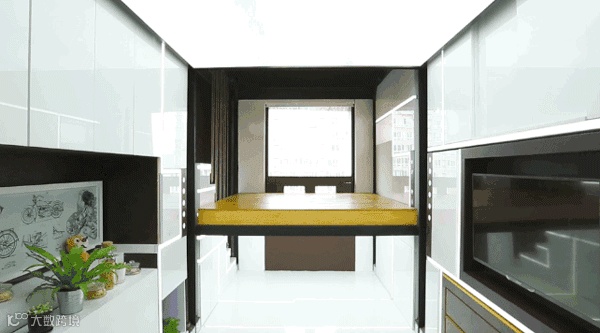 通过墙体的移动,变出健身区,平时这个区域是完全隐藏着的。