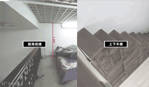 为了多一点使用空间,小两口还是将房子隔成了两层。但是在二楼就得猫着腰了,非常压抑。怎么办?