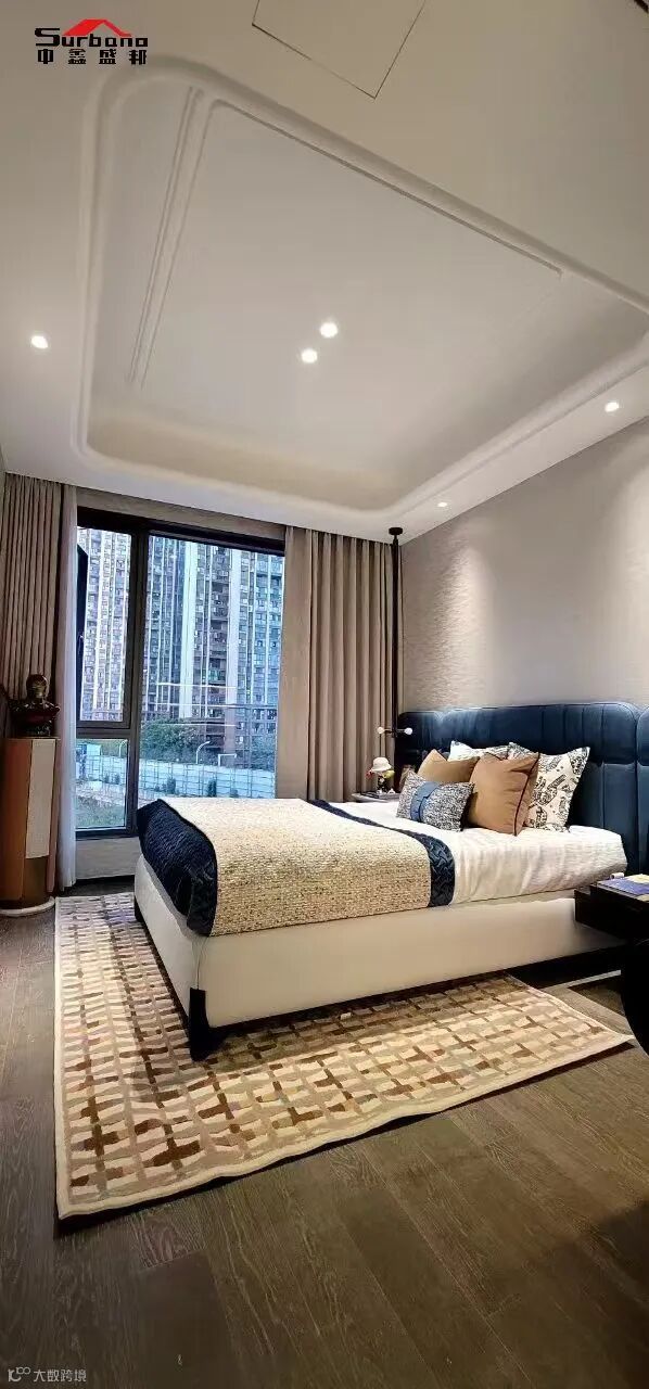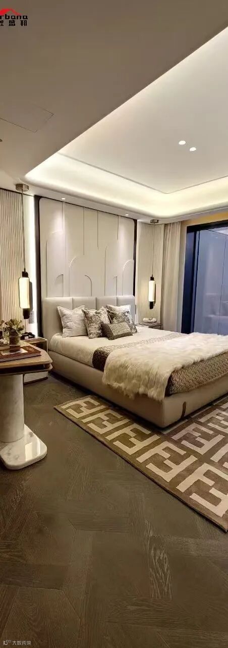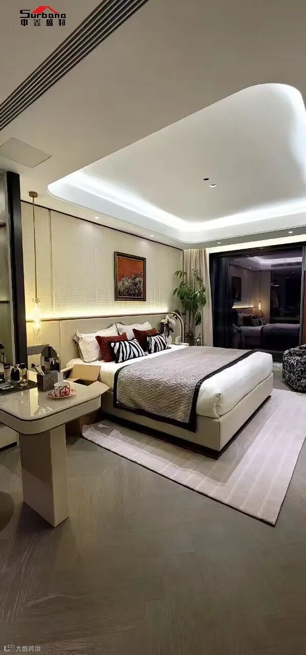卧室则是静谧的私人港湾。柔和的灯光、温馨的色调,瞬间让人放松身心。床铺柔软舒适,床头的设计独具匠心,或带有精致的软包,或有艺术感十足的背景墙。衣柜的收纳空间充足且设计合理,衣物摆放井然有序。每一个细节都考虑到居住者的舒适度,让您在繁忙的一天后能在这里享受最甜美的睡眠。