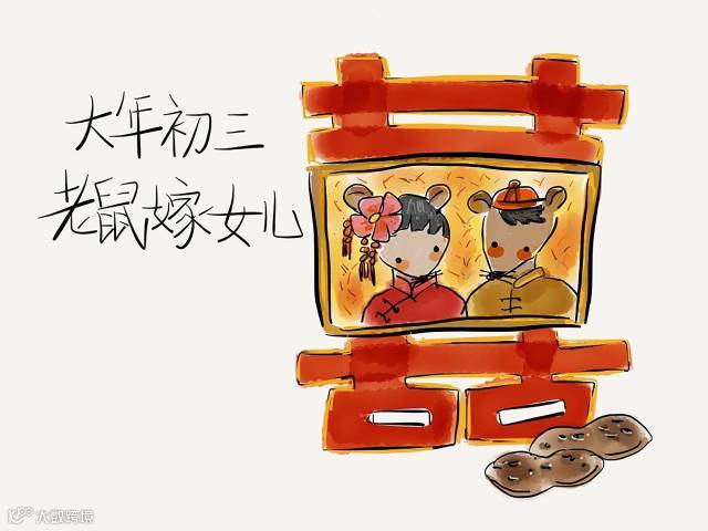 【正月初三】传统习俗中,正月初三被认为是老鼠嫁女儿的日子,所以到了晚上要早早休息,不能打扰到老鼠嫁女儿。老鼠大有“谁不让我过好这一天,我让谁难受一整年”的味道,如果惊扰了老鼠嫁女儿,老鼠就要祸害这一家。为了地里的收成,早早的睡觉吧!