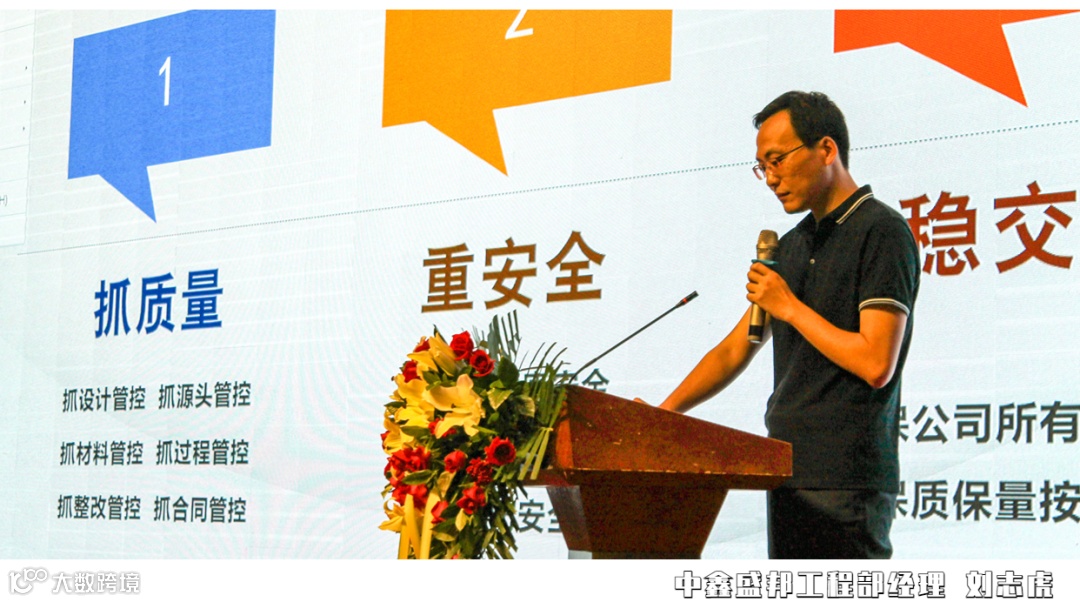 中鑫盛邦总经理宋飞先生重点阐述了2023上半年的工作情况和下半年战略目标:以高质量的项目为基础,以质量安全为底线,以科学高效管理为策略,在完成年度10个亿业绩目标的基础上,赋能“中鑫盛邦30城·30亿”战略计划!