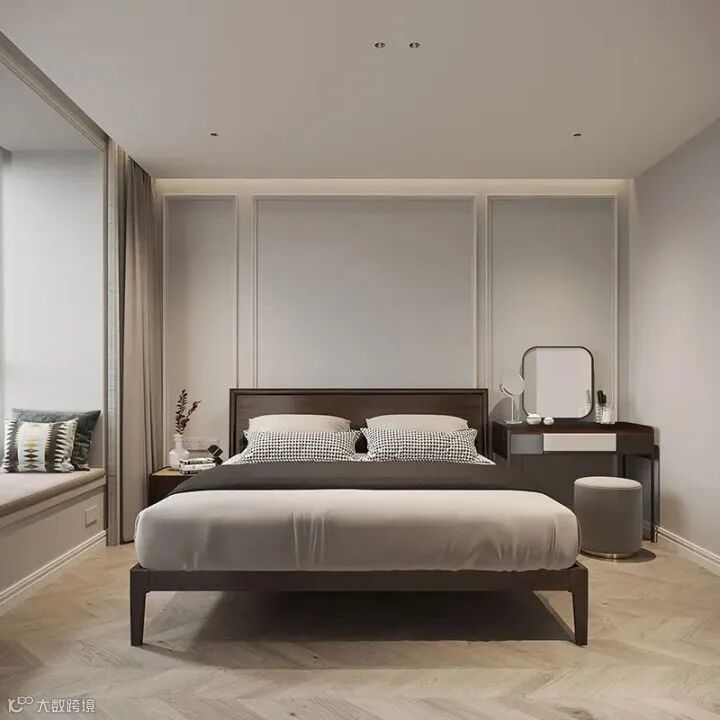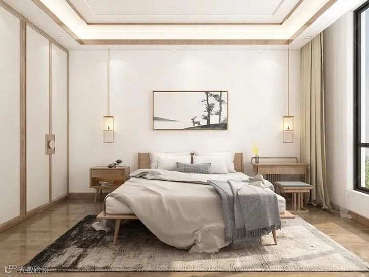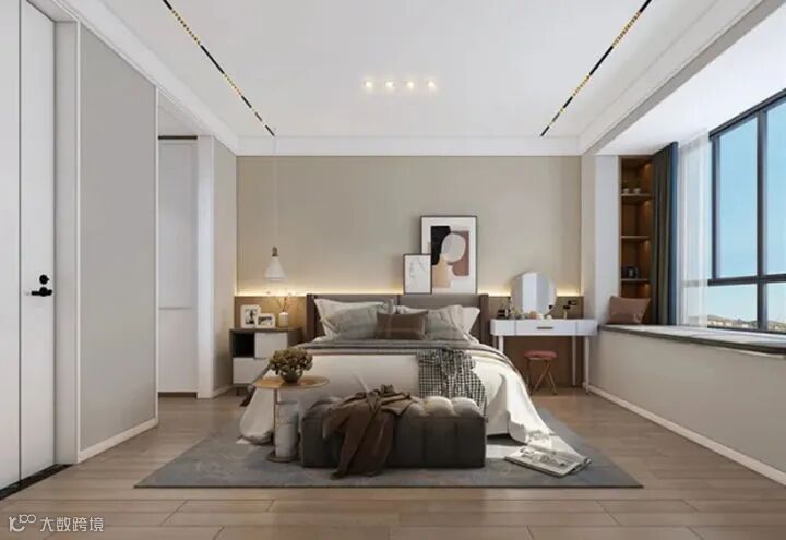 和室内其他空间不同,卧室的整体色调主要以温和为主,这样更容易让人身心得到放松,建议用饱和度低的颜色作为空间的主基调,过于鲜艳的颜色可以作为点缀,让空间色调更加丰富,但是切记不宜大量使用。