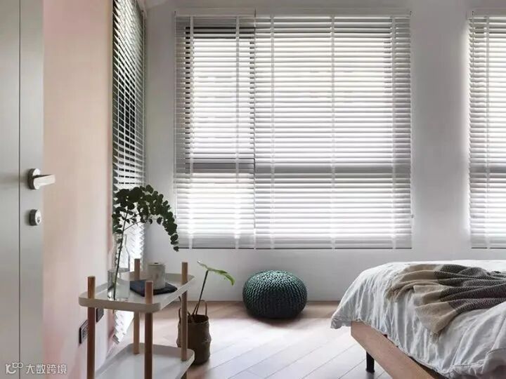 相比于布帘来说,百叶窗的装饰效果是非常好的,清爽简洁的设计,独特的光影效果,让卧室整体效果看起来非常温馨,使用起来也比较方便。
