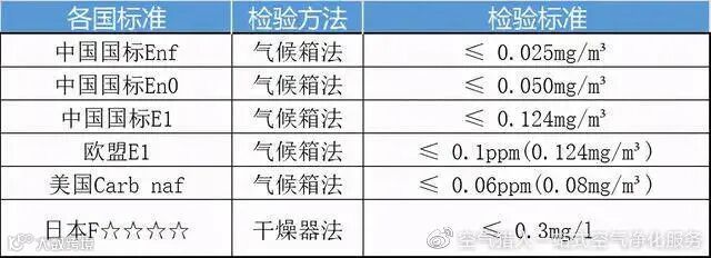 参考下图可以看出,新国标的E1相当于欧标的E1,Enf标准成为目前全球甲醛检测数值最严格的板材甲醛标准。