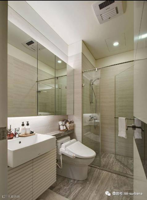 尽量让干湿分区,对于没有窗户的卫生间来说,尤其要注意干湿分区。因为暗卫本身就具有不通风的缺点,做好干湿分区后起码只有湿区需要晾干了,同时也便于平时的打理。