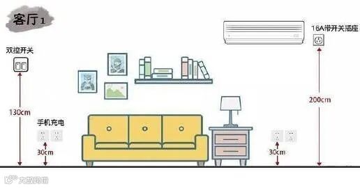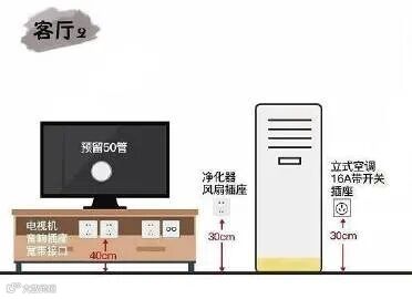 客厅是家庭活动最频繁出入的空间,而且家电多而杂,因此插座的必须配置齐全。