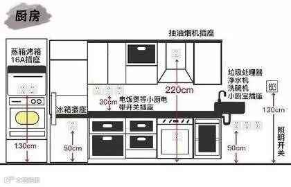 厨房家电是涵盖种类繁多,并且日常使用频率高。所以在设计时,最好预留多几个插座,尤其是在操作区。
