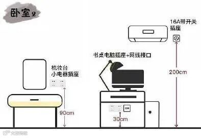 卧室是日常休息的地方,如果有工作和读书的需求,需要安装5个以上插座。另外要根据电器选择合适的插座,例如是立式空调,则需安装3孔插座。