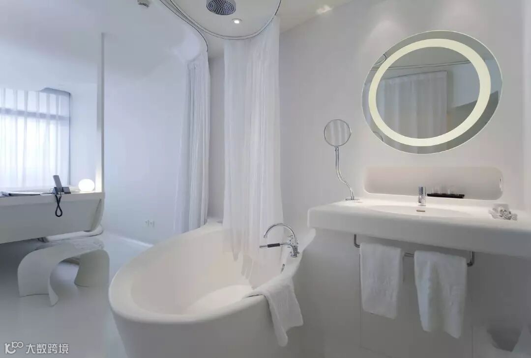 卫生间从地板到天花板通体颜色与客房颜色保持一致,同时房内所有的电子灯光设备通过智能开关控制,对懒人来说简直就是福音。