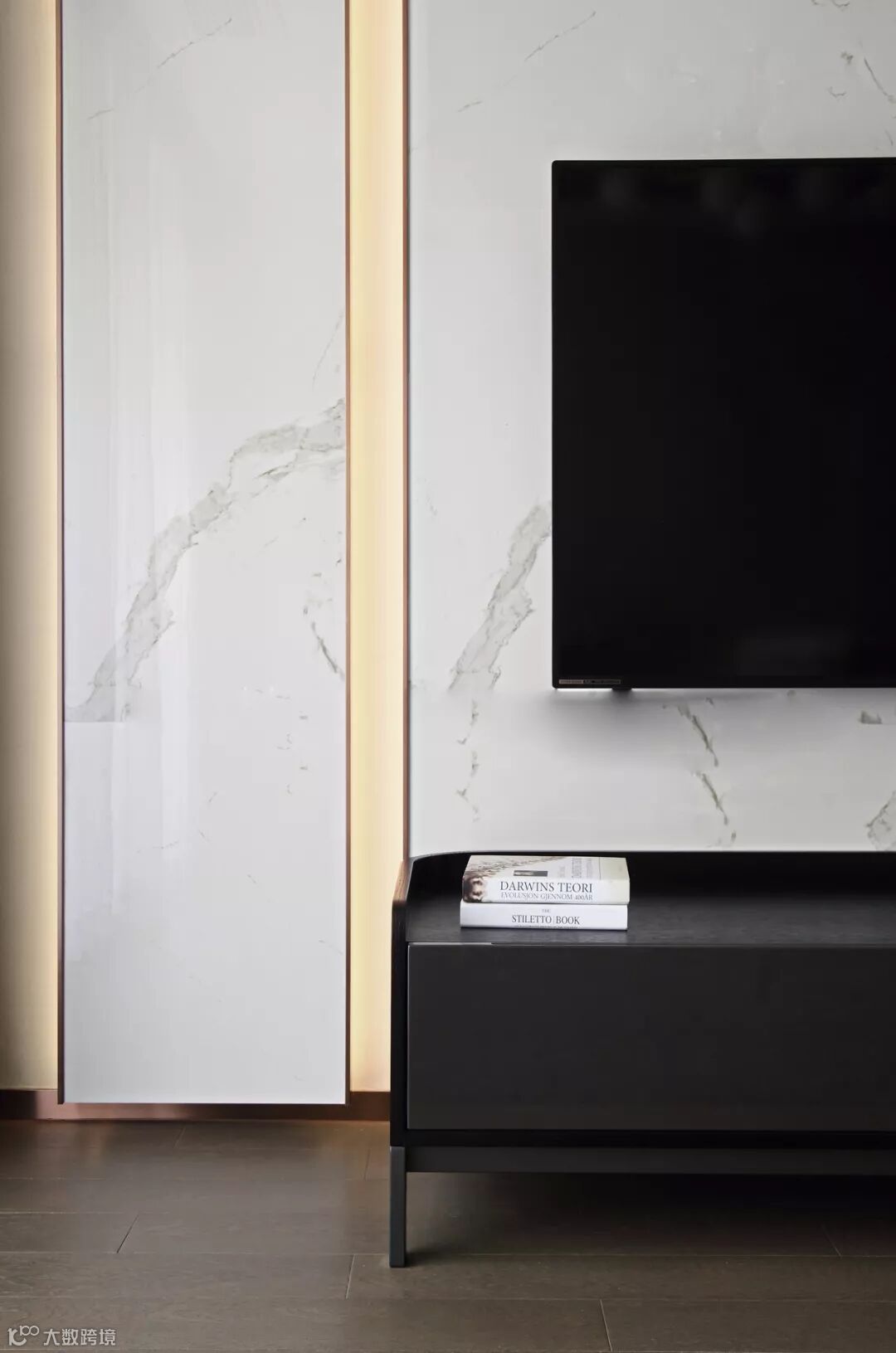 优雅别致的电视柜,配合着白色的背景墙,使空间更显气质,更加夺人眼球。
