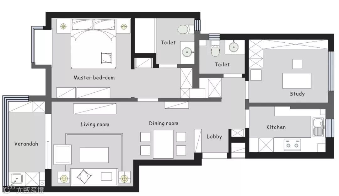 本案设计是以简约为主,选购的家具与配饰以简洁的造型、完美的细节,营造出时尚前卫的感觉。色彩上以灰色为主色调,与屋内现有的颜色相匹配,使整体居室充满了惬意、轻松的氛围。