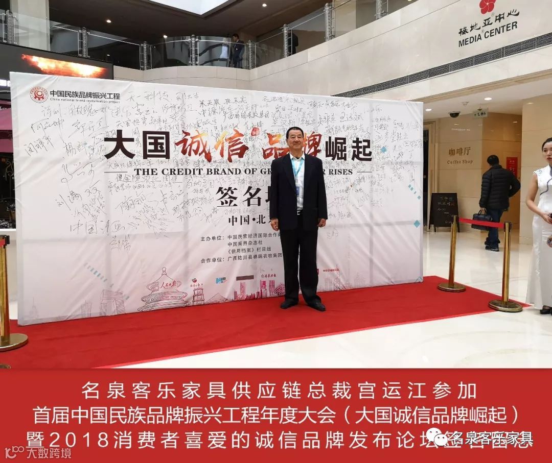 董事长宫运江2018年受邀参加在北京举办的大国诚信,品牌崛起高峰论坛,名泉客乐家具供应链获得消费者信赖的诚信品牌!