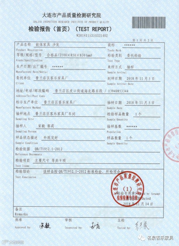 我们产品的质量检验报告!