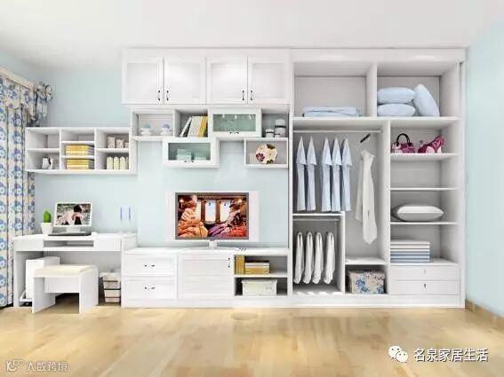 这是一款电视柜与衣柜相结合的整体衣柜,这种衣柜不仅设计上非常的个性化,时尚,而且能在一定程度上提升整体家居的装修效果,直接一步到位,而且还可以节省空间。