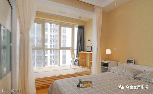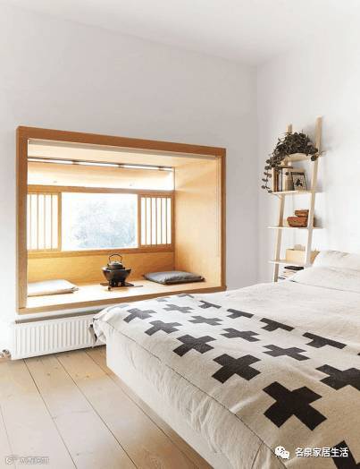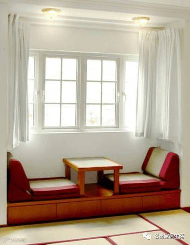这版比较适合于房间空间有限的朋友们,你可以直接定做一个储物柜,上面放上榻榻米的垫子和一个小方桌就可以了,只要注意颜色的搭配就可以了。这款虽然不如移窗版的有格调,但实用性比较强。