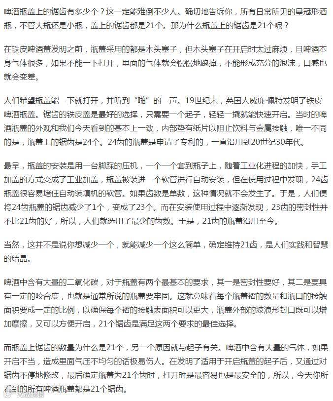 你知道啤酒盖有多少个锯齿吗