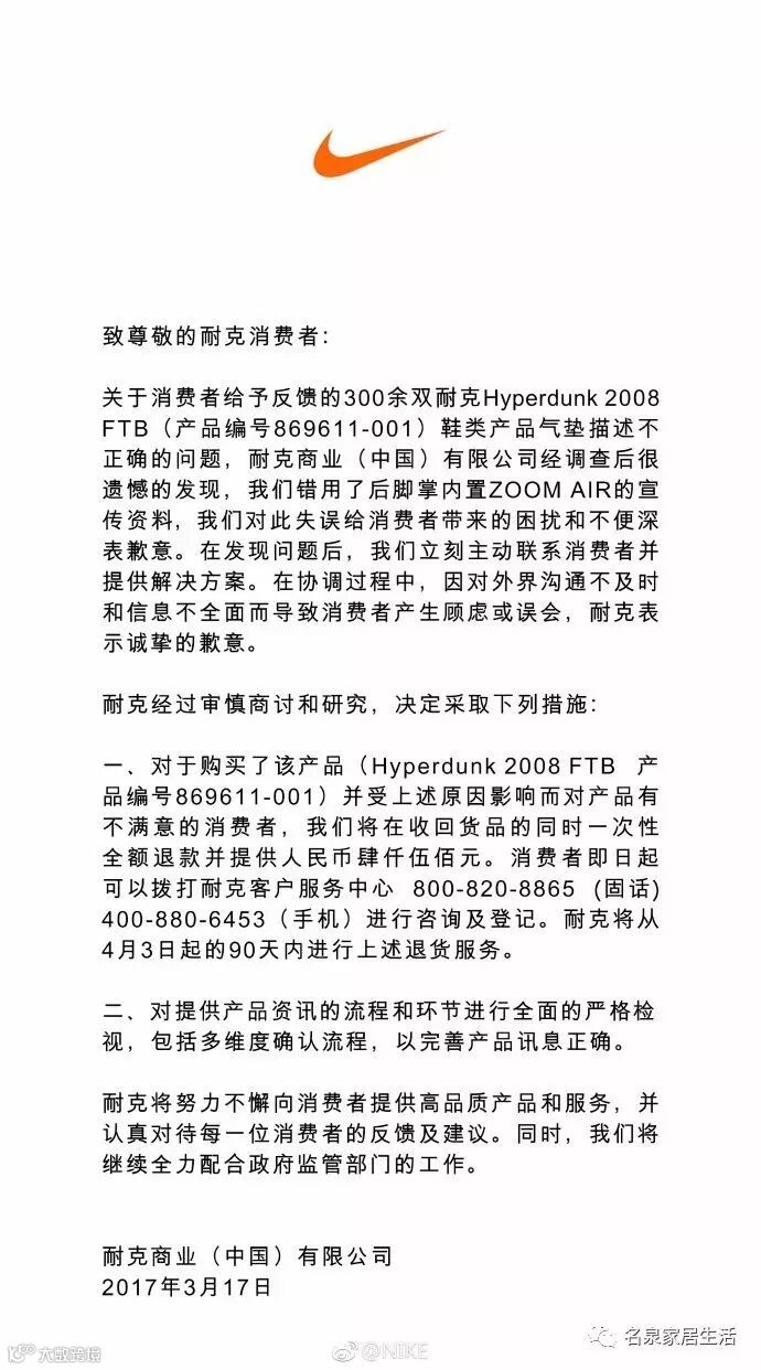 自315晚会曝光气垫事件后,耐克官方第二次做出回应