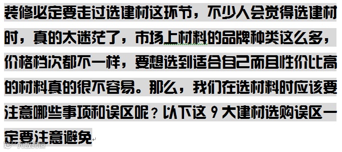 导读:装修必定要走过选建材这环节,不少人会觉得选建材时,真的太迷茫了,市场上材料的品牌种类这么多,价格档次都不一样,要想选到适合自己而且性价比高的材料真的很不容易。