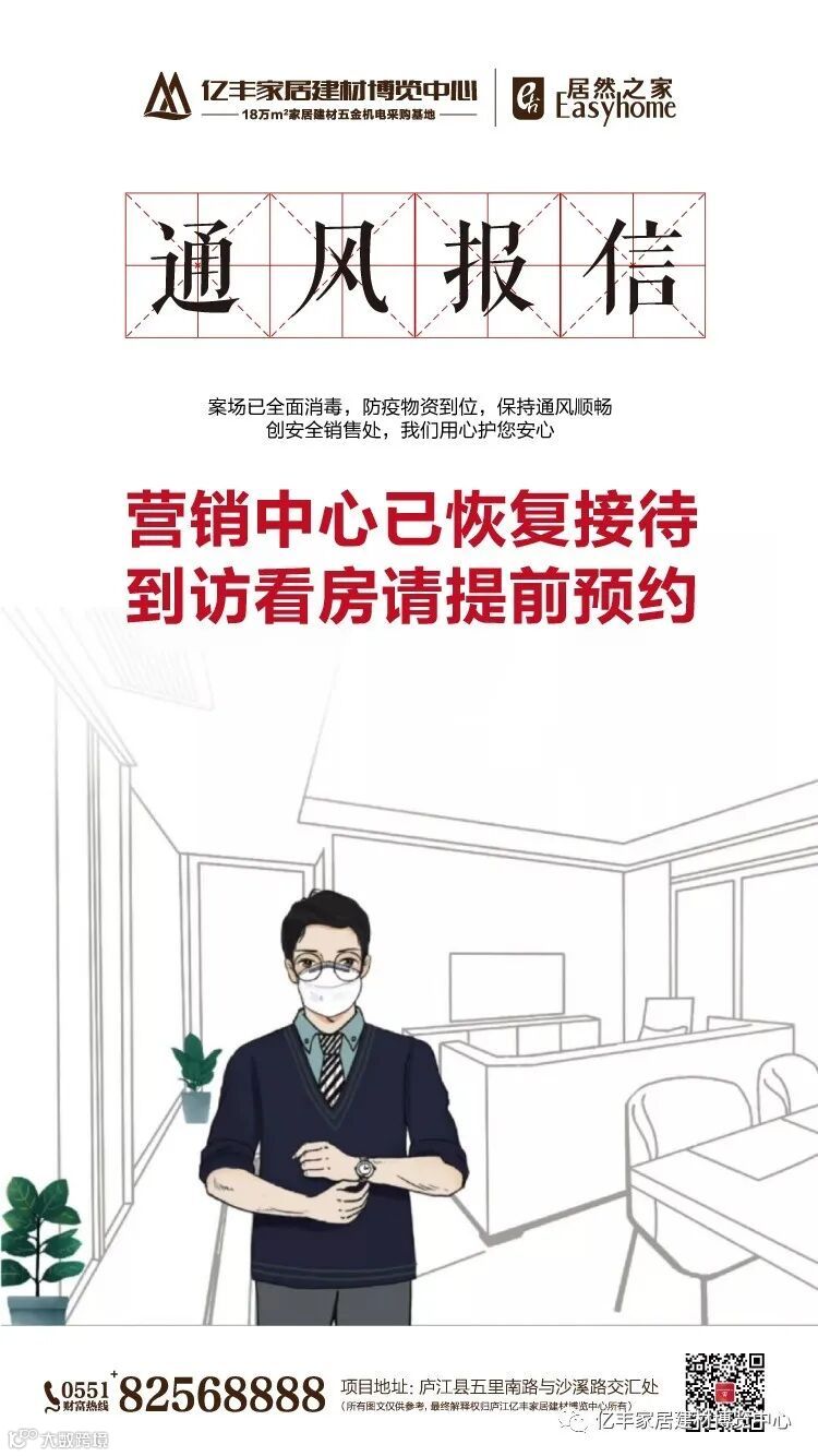 为了让您安心看房,同时响应国家的号召:勤清洁、抗疫情,庐江亿丰家居建材博览中心销售中心全体工作人员已做好了全面的防护!