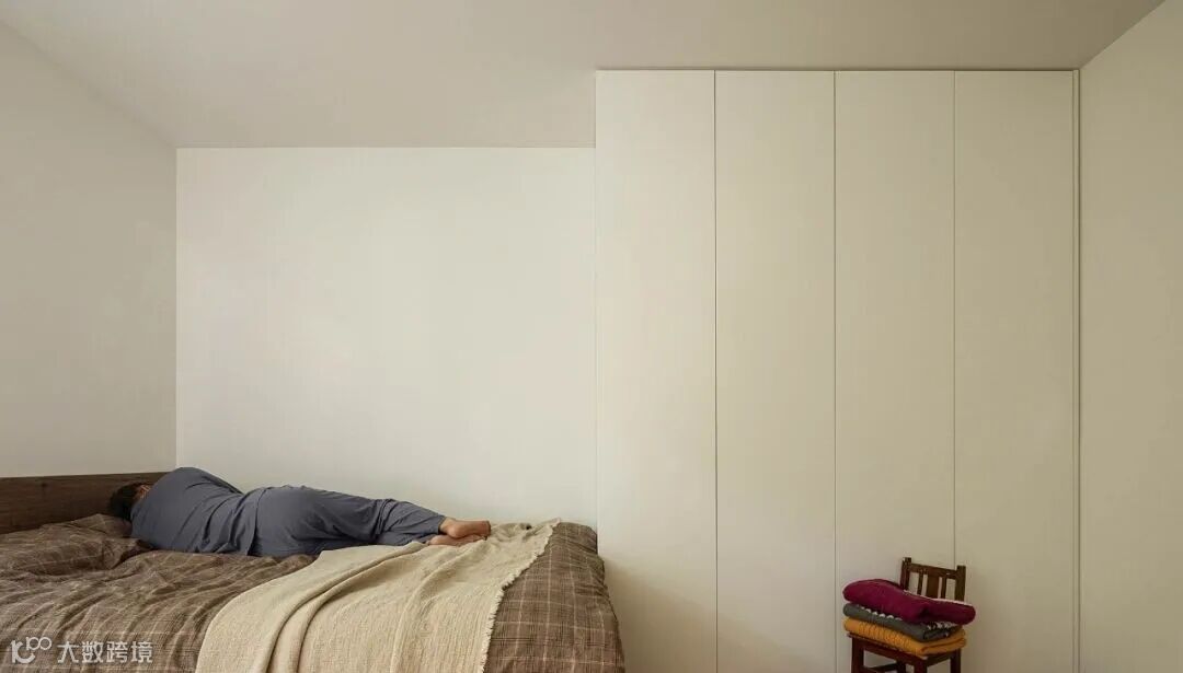 ▲ 卧室一,某一种生活状态在空间中的呈现,女业主手工编织的毛衣、岁月痕迹的凳子、日常使用的布鞋,这些承载着业主生活痕迹物件的加入与人物关系一起,构建出了有趣的生活场景