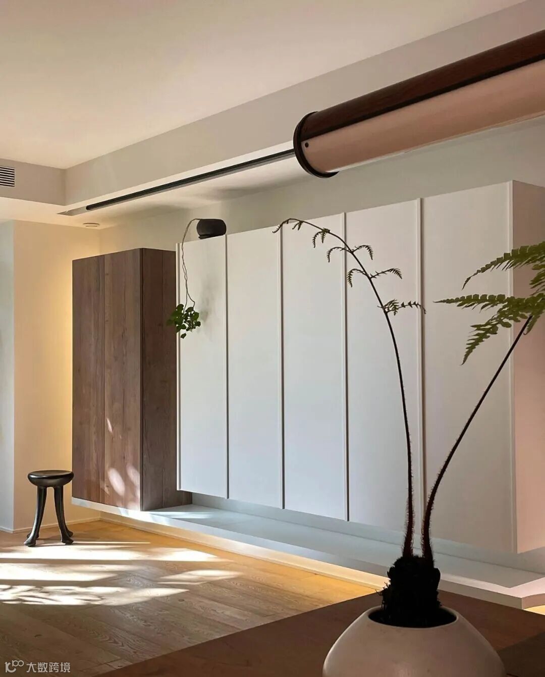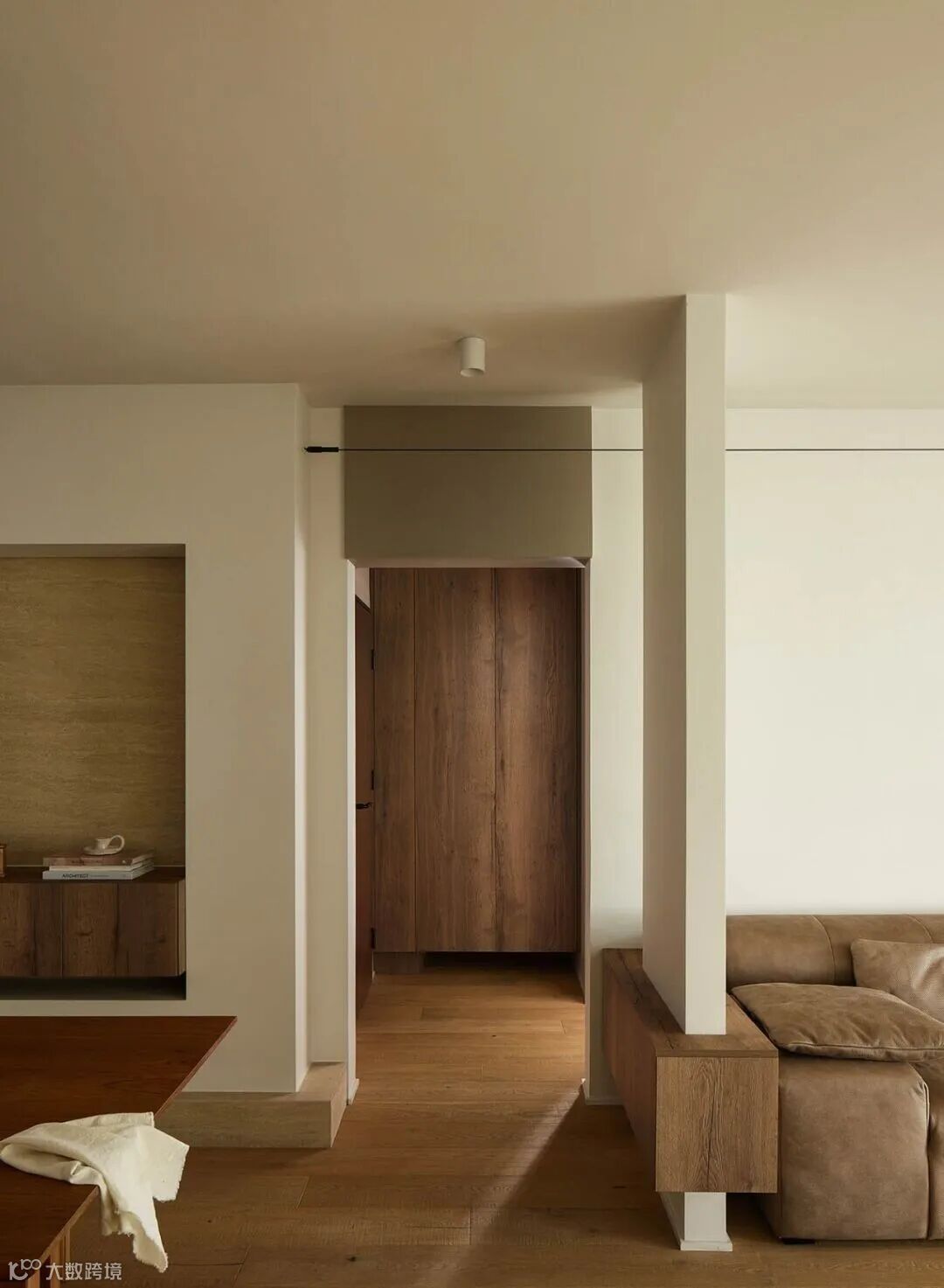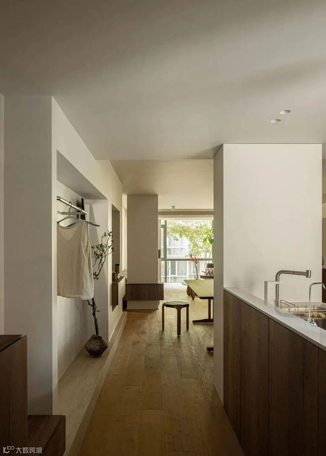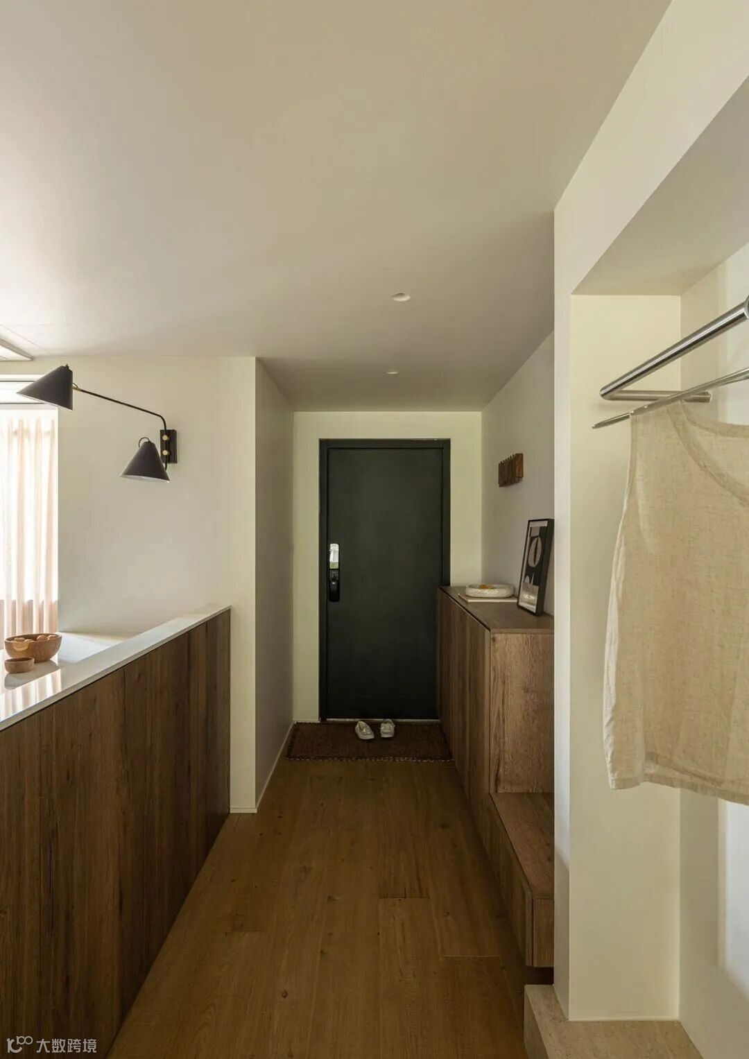 ▲ 入户视角,沿过道还设置了临时挂衣区