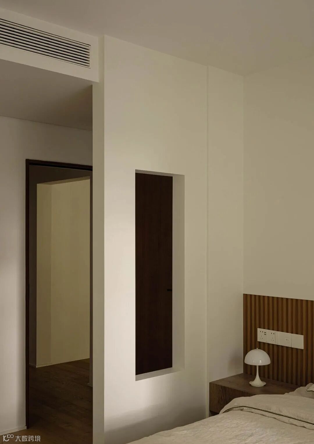 ▲ 卧室二,房门与床头之间新增造型隔断,化解入门直面床头的尴尬,提高使用者的安全感与舒适度