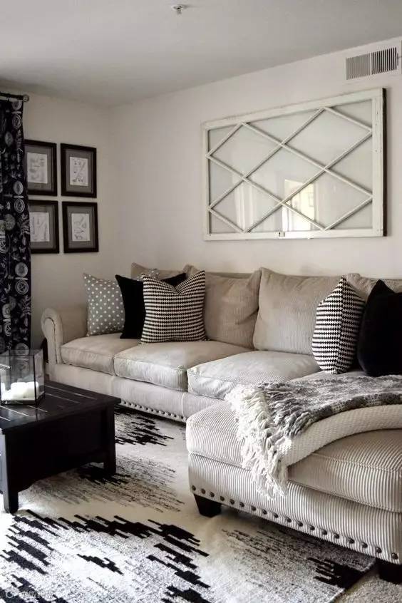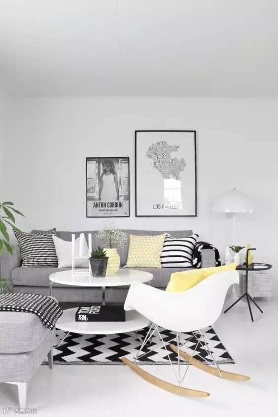 所以靠垫和地毯也全部用黑白几何纹来搭配