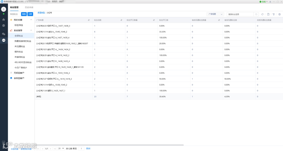 1.会话来源统计:自动统计会话笔记来源,优化种草效果。