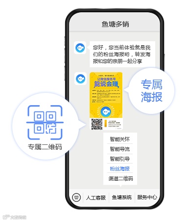 鱼塘粉丝海报,具有快速吸粉轻松获客、吸粉数据清晰可查、粉丝标签化管理精准营销、性价比高等优势,深受企业青睐。
