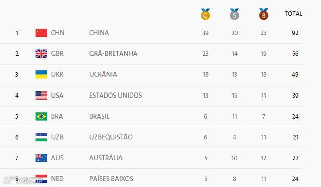 时间9月12日8时,中国代表团已获得39金30银23铜,继续保持领先态势。