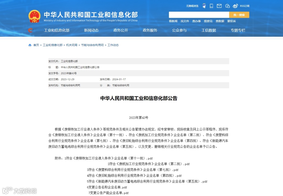 2024年1月17日,工业和信息化部正式公告第五批符合《新能源汽车废旧动力蓄电池综合利用行业规范条件》企业名单,贵州鑫茂新能源成功获得工信部白名单资质。