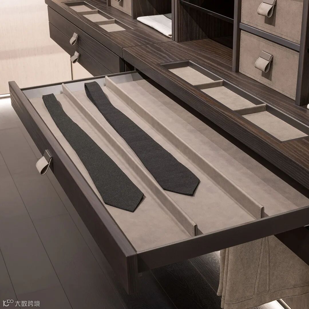 浅而精巧的抽屉,是存放精致配饰的理想之选,璀璨的珠宝、典雅的领带等。这些小巧而珍贵的物品,在浅抽屉的细心呵护下,得以妥善安置,既避免了相互间的磨损,又便于日常取用与欣赏。