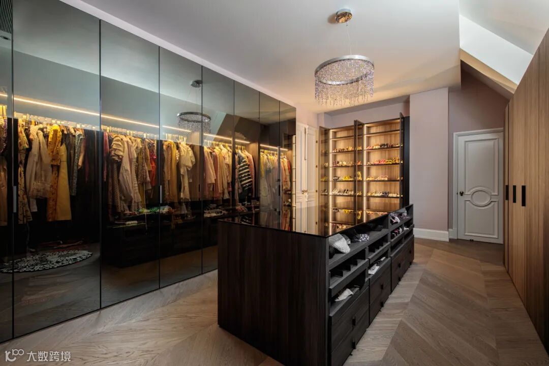在衣帽间的核心区域,可巧妙地融入一座岛台设计,再精选几件令人赞叹的艺术品点缀其间;亦或开辟出一个专享的包包与鞋履展示区,每一件珍品都在此熠熠生辉,共同构筑一个既兼顾实用性又不失雅致美观的个性化衣帽天地。