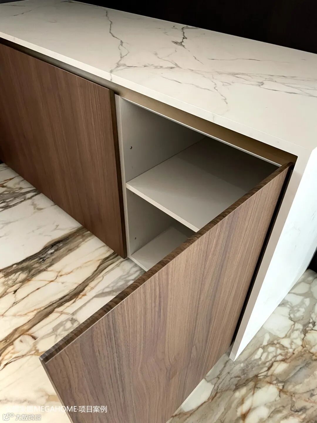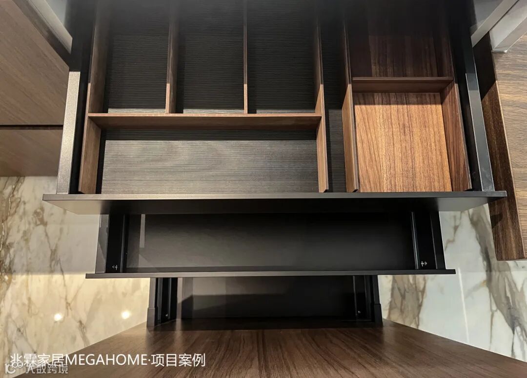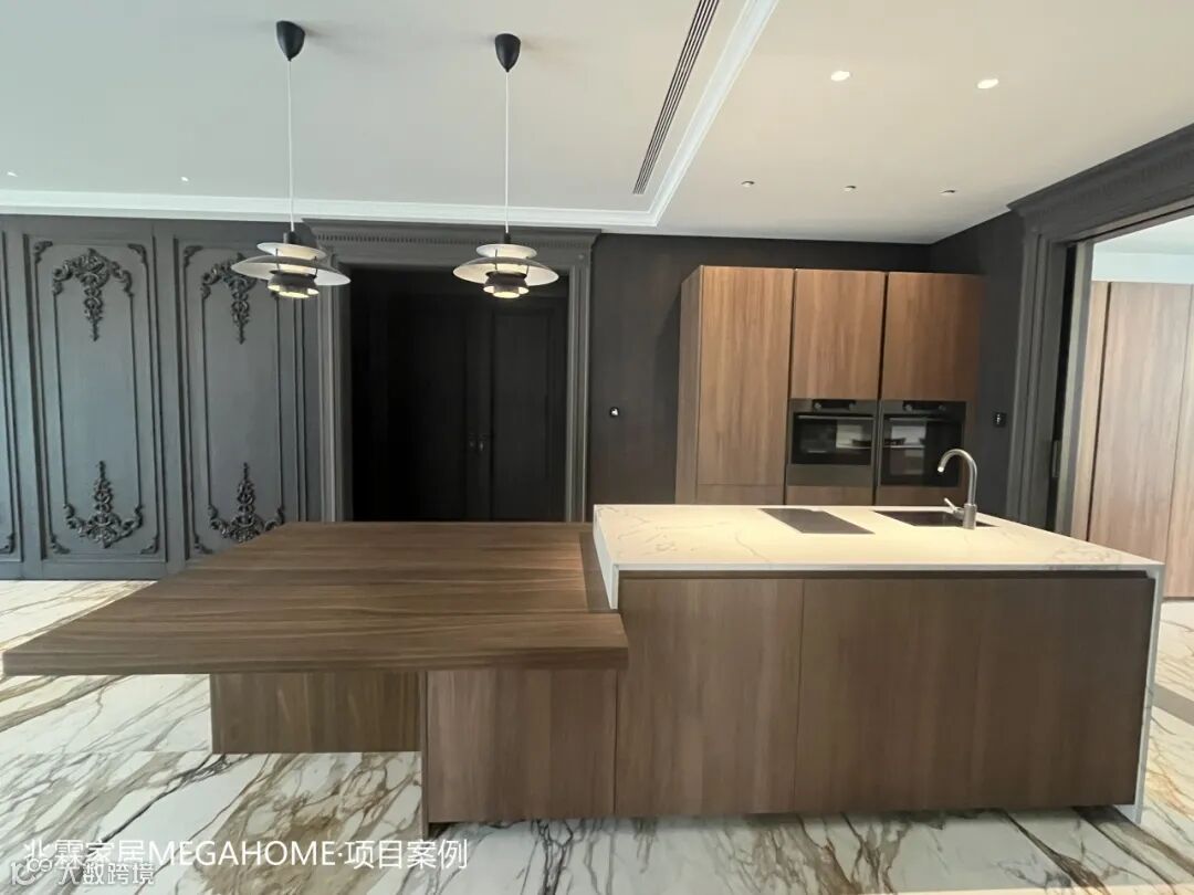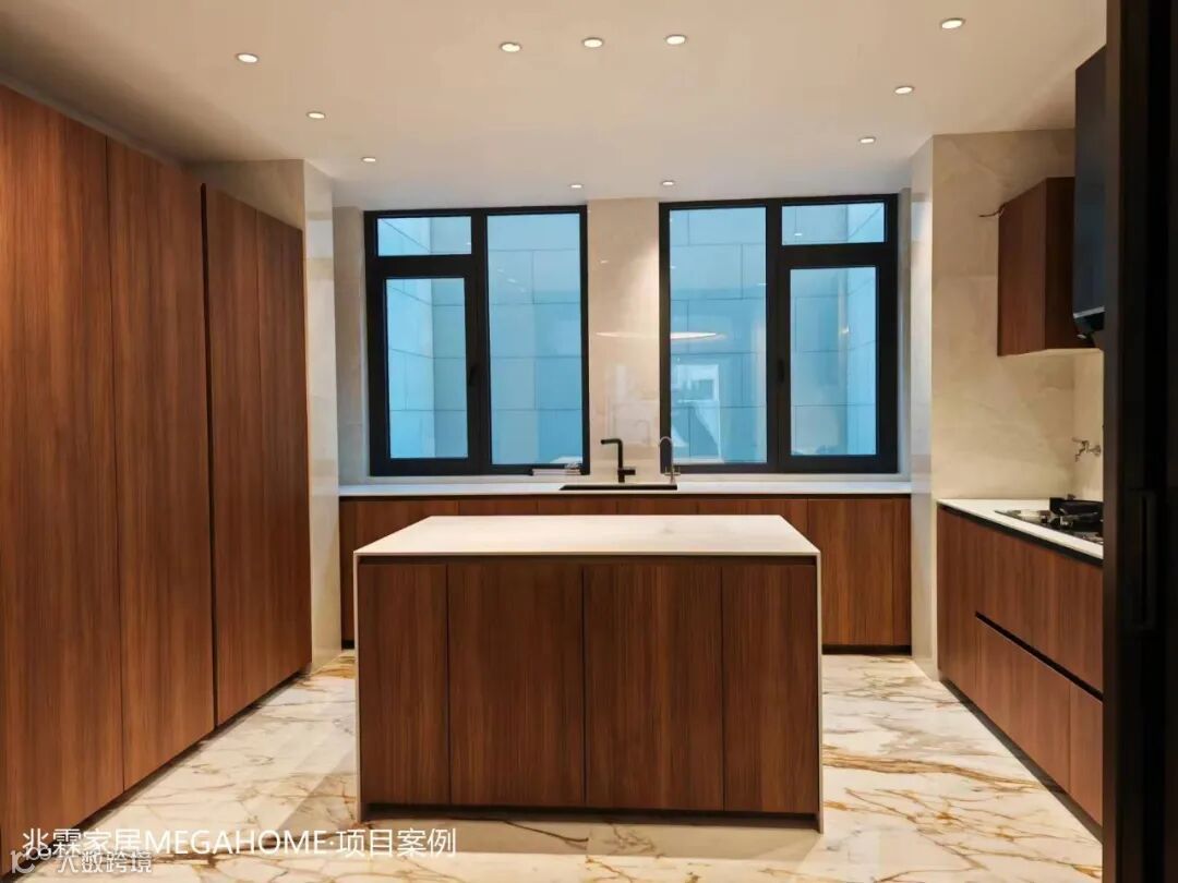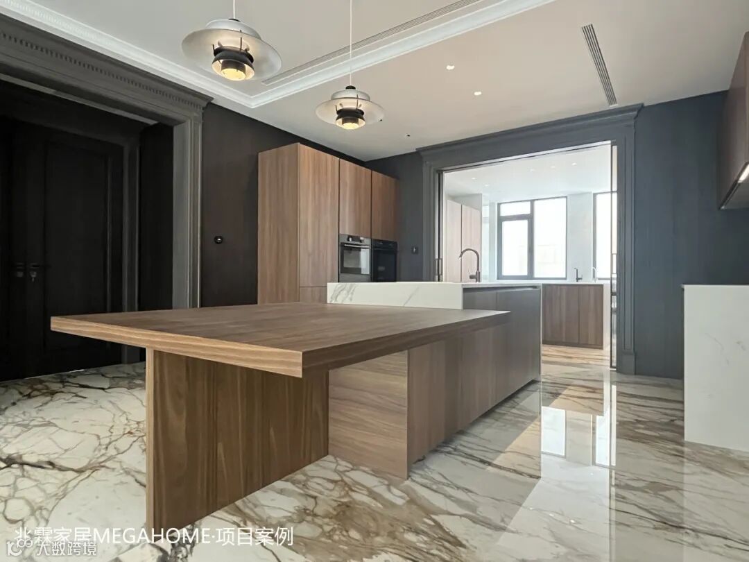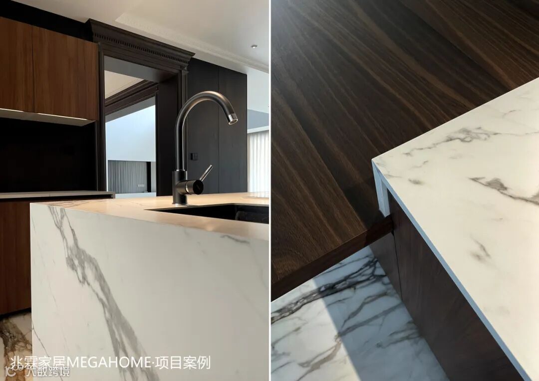 精选的木饰面,温暖的色泽与细腻的纹理将一份质朴与宁静引入这方烟火之地,而与之相映成趣的是,大理石的冷冽与高贵,在触感与视觉上形成鲜明对比,为厨房空间增添了一抹不凡的气质与深度。