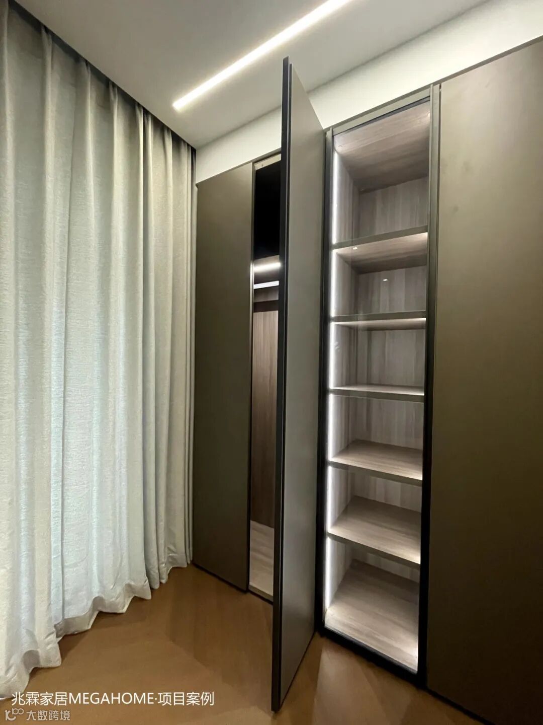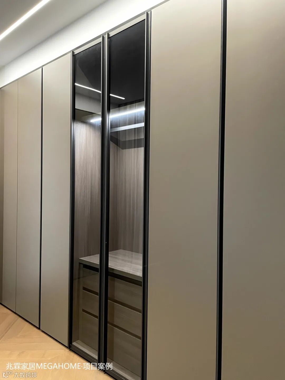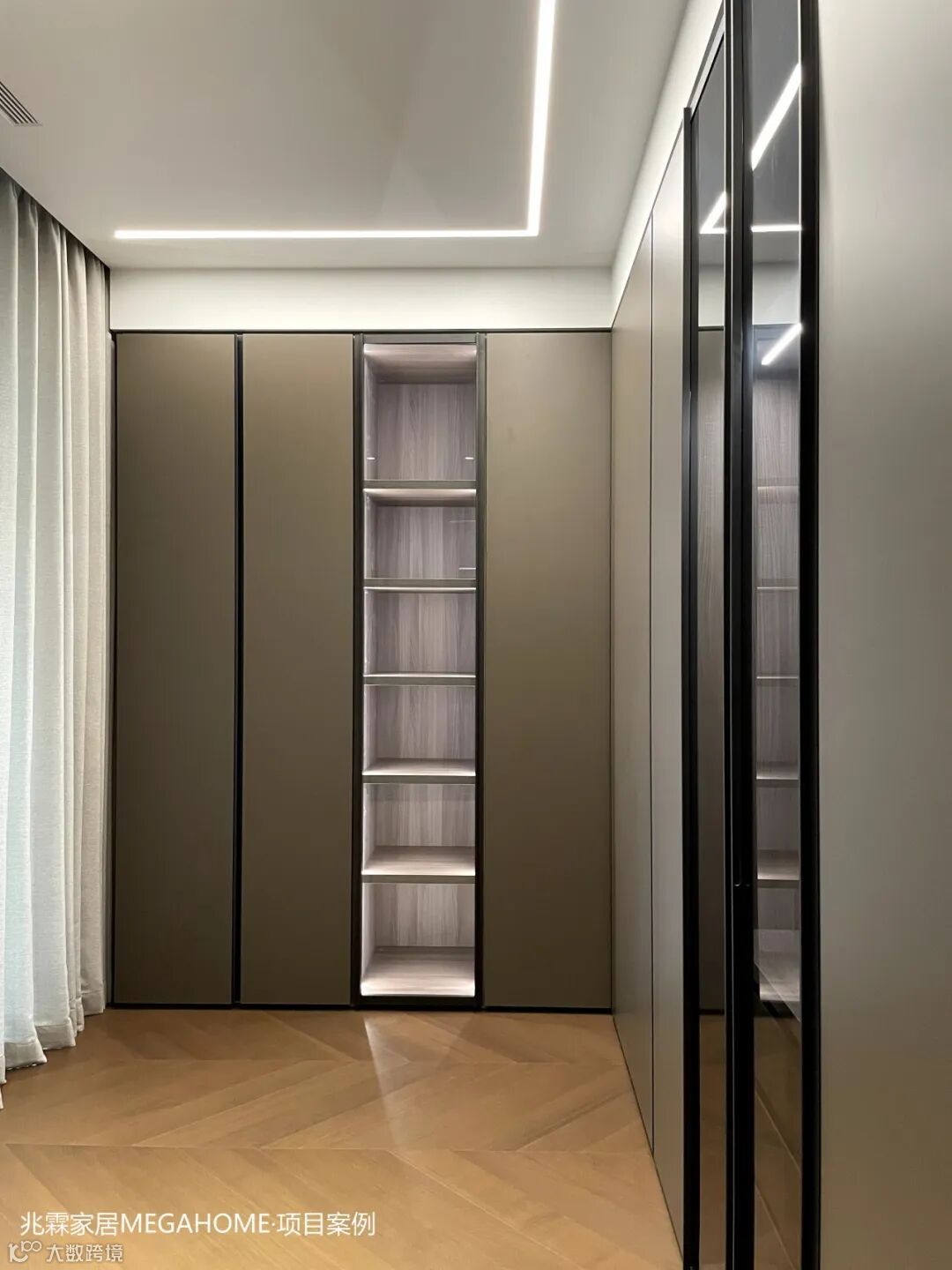 Sinua系列衣帽间以其玻璃橱窗为特色,完美贴合现代家居的流线美学,让空间利用达到极致。每一枚戒指、每一条项链,在这里都能找到它的闪耀时刻。