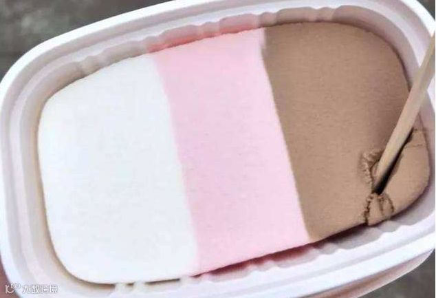 小时候三色杯还算比较新奇,卖的算贵的了,只有考高分的时候姆妈才可能奖励一个。里面有三种口味:草莓、香草和巧克力的。小时候总喜欢把三种口味分开吃,一种吃完了再去吃另一种口味。