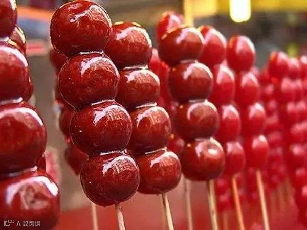 冰糖葫芦最经典的口味就是山楂果口味的。红彤彤的山楂果儿外面裹着晶莹剔透的糖浆,最外面是一层透明的糯米纸,买上一串能一直舔着吃回家。