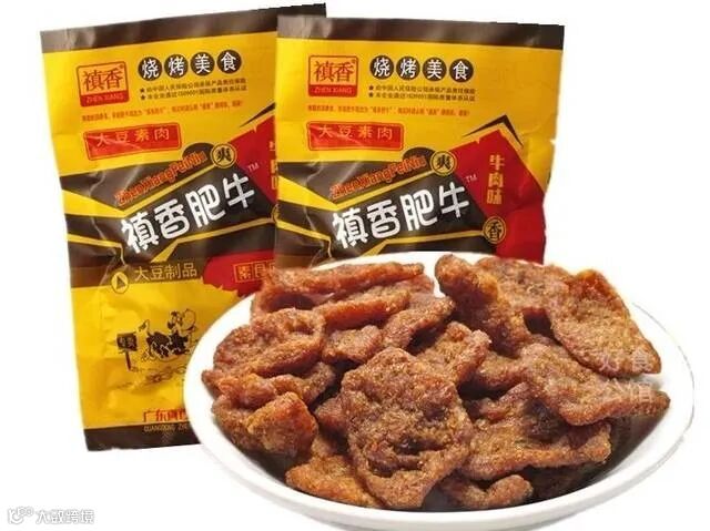 这是一种烧烤味的大豆蛋白制品,吃起来甜甜的,湿湿的,很入味。