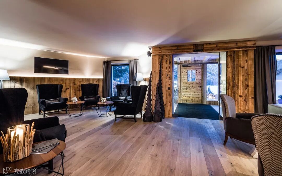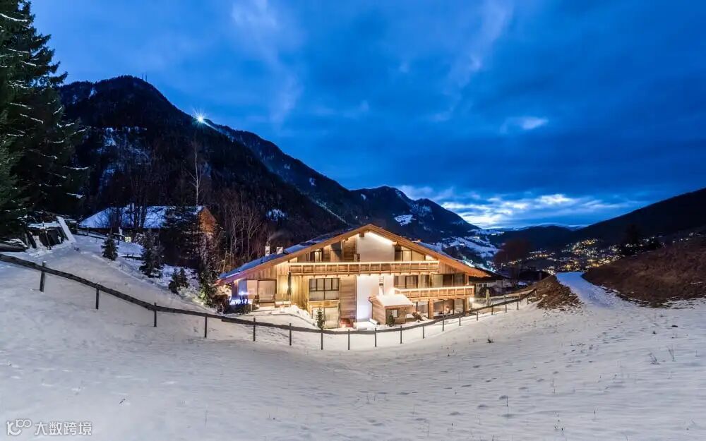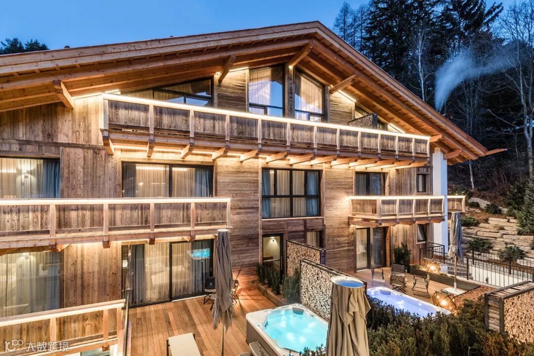 五星级木屋酒店Montchalet于2016年在意大利著名的瓦尔加迪纳(Val Gardena)镇建成,瓦尔加迪纳位于意大利北部的多洛米蒂(Dolomites)山区,与奥地利相邻,是滑雪和攀岩的旅游胜地,当地出产的木雕也十分有名。