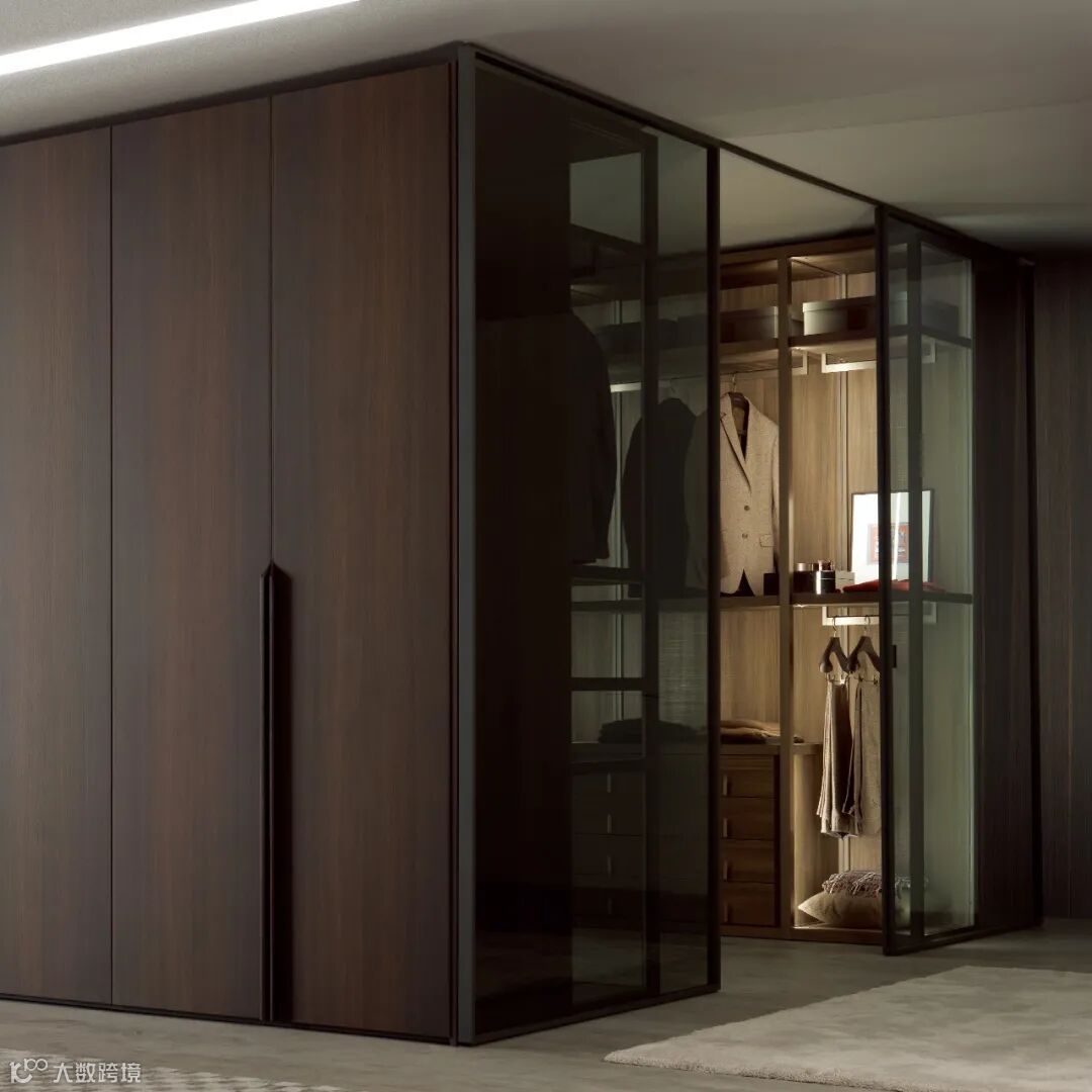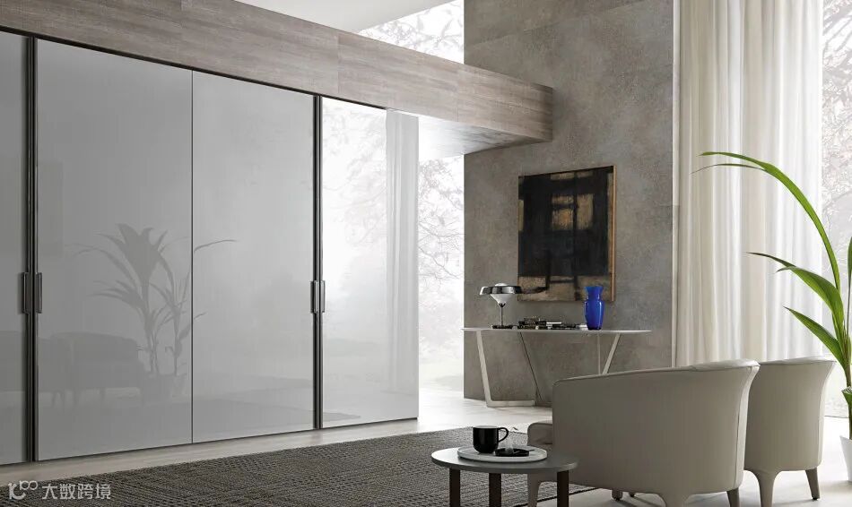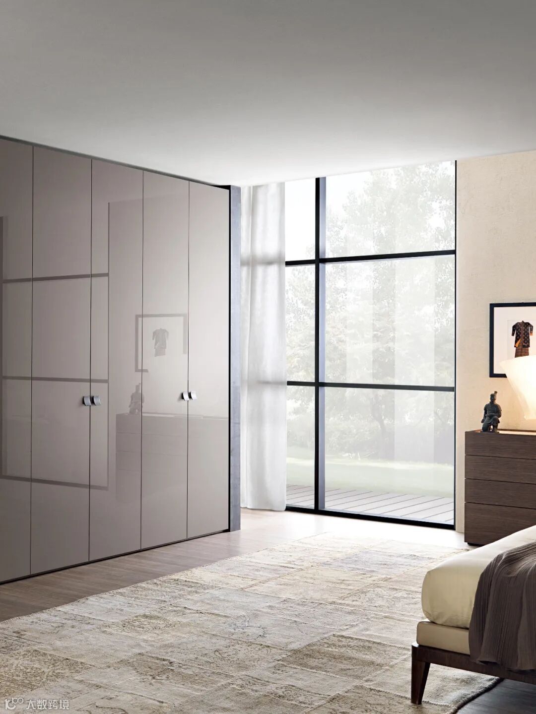 玻璃门板有2种材质可供选择,一种是纯镜面玻璃,通彻明亮、简约大气。轻盈的设计感、空间的流线感与严谨的秩序感相得益彰,诠释出摩登现代的家居氛围。