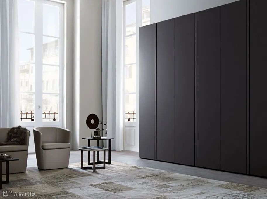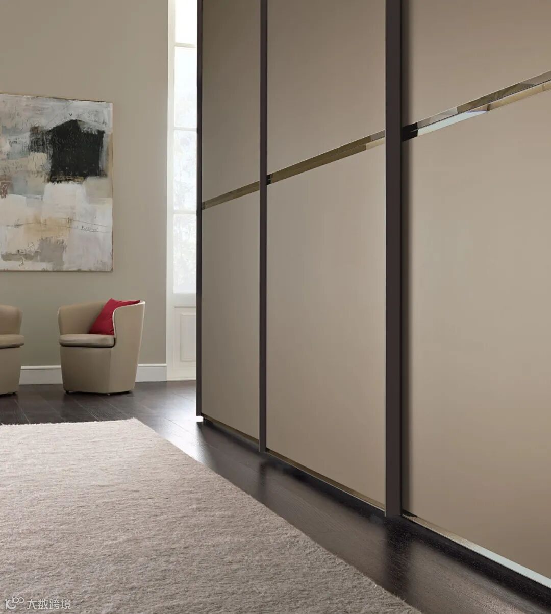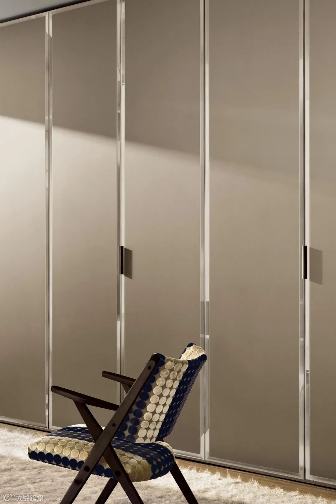 Brillanta衣柜将经典优雅揉进了每一处细节,门板的边缘采用了金属封边,在和谐有序的色调基础上,达到画龙点睛的效果。衣柜边缘还做了2次45度斜边处理,减轻衣柜整体的体量感,显得更加写意轻盈。