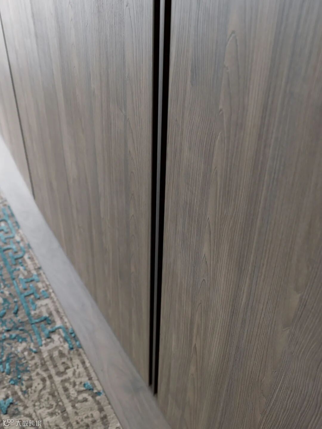 Tecno衣柜门板采用了特殊的3D打印技术,可以打造木纹、金属烤漆等效果,大到宏观光泽,小到凹凸纹理,每一处细节都处理得恰到好处,简洁有序的线条沉淀了空间的温度,成为MisuraEmme永恒优雅的产品典范。
