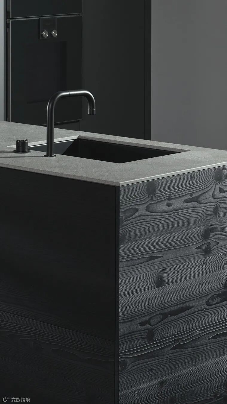 光与影营造出一种神秘的氛围。精心制作,模仿了日本木材精加工工艺“Shou Sugi Ban”, 染色工艺——木材表面经控制碳化燃烧/炭化,然后密封,这使得表面更坚固耐用。