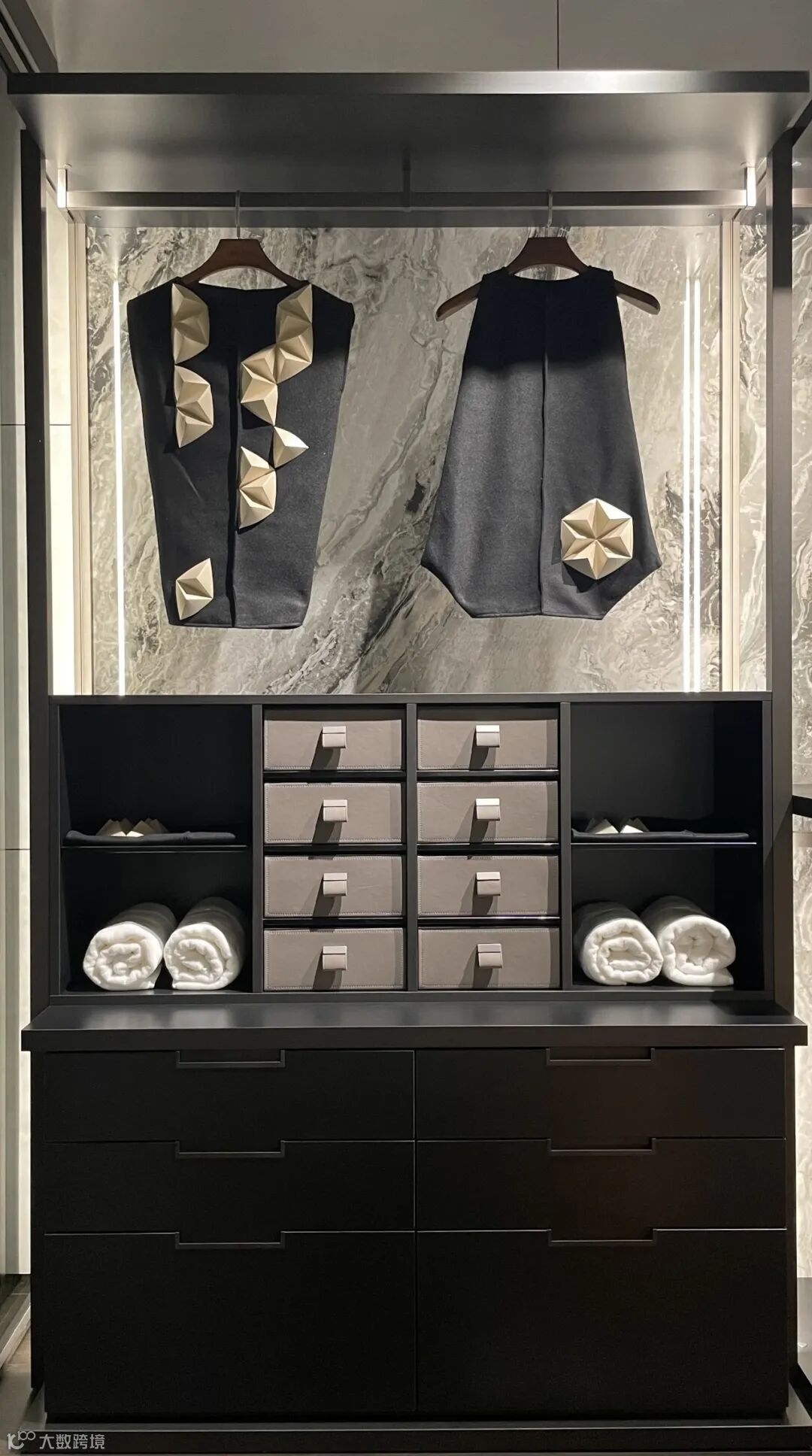 通透的玻璃柜门可以很好地展示衣柜的内部构造,让一切回归本质,华丽绽放。私人定制的自我风格、兼具理性的次序布局、优雅高贵的审美品味,MisuraEmme犹如把天空之镜搬到了衣帽间里,让衣帽间不再只是充当收纳衣物的存储系统,而是陈设华丽衣裳与心水好物的最佳展区。