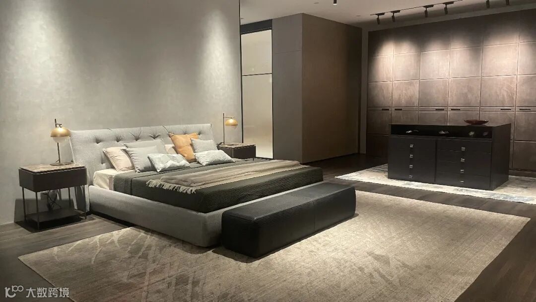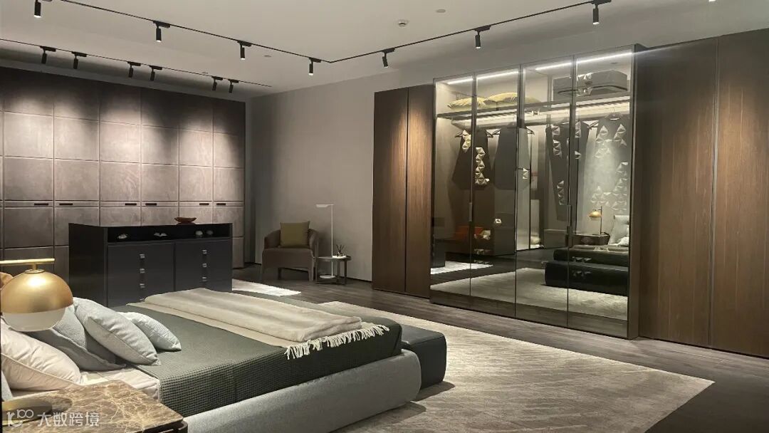 从Palo Alto酒柜往里走就来到卧室区域一。极受欢迎的Lonlon衣柜占据了卧室的主角,顶级翻毛皮柜门是它的精神内核,流畅的线条和细腻舒适的触感流露出卓尔不凡的气度。