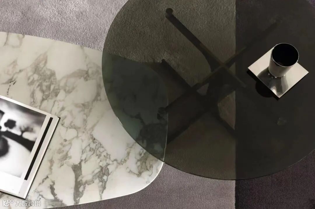 采用意大利最顶级的Nubuck皮料的Virgiin Round沙发,触感细腻,色泽柔润,葆有精致的艺术美感,让人神往。展陈空间上方的光束倾洒于Gemini&Stilleto茶几表面,突出大理石材质的原始质感,让细节与品质一览无遗,创造出更丰富的家居氛围。